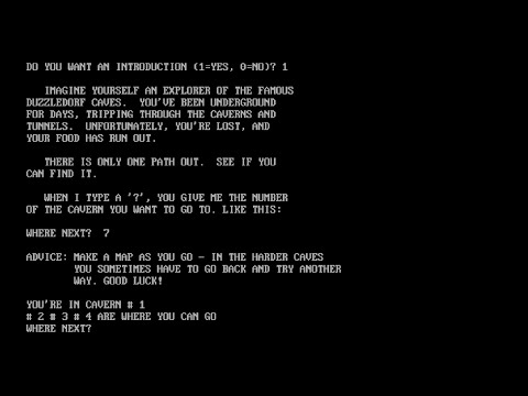 The way the network of caves functions in the Caves series is on what Kaufman called a "tree" system. Each cave that doesn't lead to a dead end splits off into three options - at least one of them will lead to another branch of the cave system. Sometimes multiple branches lead to dead ends, requiring backtracking multiple rooms to try again. Kaufman encourages making maps to track your progress. I'd consider this the first true instance of encouraging a now-lost art of video games - map making. Yes, Mugwump encouraged a form of it, but that was for educational purposes and doesn't work the same way.